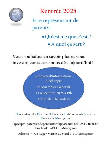 - APEESPM (Association des Parents d’Elèves des Etablissement Scolaires Publics de Montgeron) :