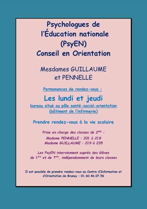 Deux psychologues de l’Éducation nationale interviennent au lycée :